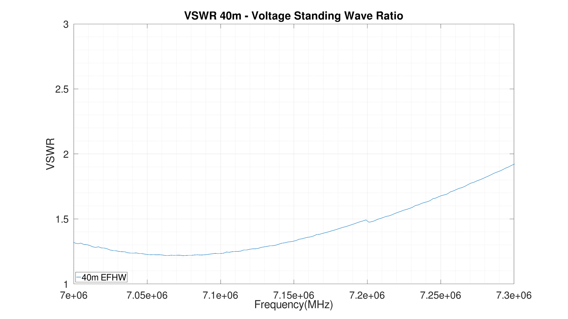 This EFHW is cut for the lower portion of the band and can be trimmed to move the VSWR minimum higher in the band.